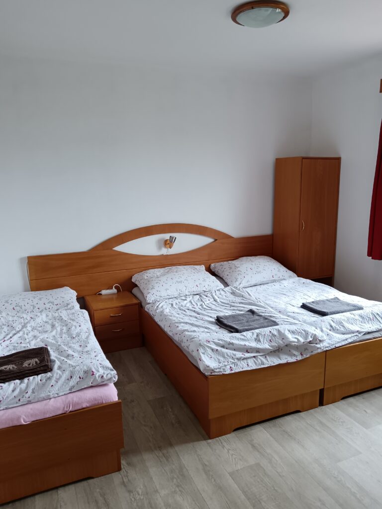 Dva pohodlné třílůžkové apartmány v přízemí a 1. patře s úložným prostorem, manželskou postelí (180×200), jednolůžkem (90×200) a možností jedné dětské přistýlky pro dítě do 12 let. Kuchyně je plně vybavená pro vlastní vaření (lednicí, varnou konvicí, varnou deskou a kuchyňským vybavením). K dispozici je vlastní sociální zařízení se sprchovým koutem, ručníky, povlečení a základní hygienické potřeby (toaletní papír, mýdlo). Součástí ubytování je také společná terasa ve 2. patře s výhledem na Beskydy a Frenštát pod Radhoštěm. Wifi je dostupná zdarma v celém objektu. Ideální pro rodiny nebo menší skupiny, které hledají komfortní a praktické ubytování za příznivou cenu.